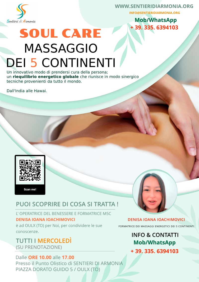 Il massaggio dei cinque continenti è molto più di un semplice trattamento fisico; è un viaggio di autoguarigione e rinnovamento energetico che coinvolge corpo e spirito, offrendo un'esperienza di benessere completa e profonda.
